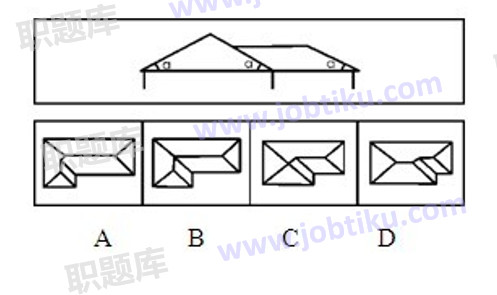 下图中,下部为同一周边界、不同尺寸的同坡屋顶不同形式的水平投影。与上部屋顶相匹配的投影图形是( )。