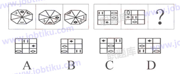 从所给的四个选项中,选择最合适的一个填入“?”处,使之呈现一定的规律性: