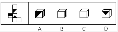 以下四个选项中的纸盒,哪个能由下边的纸板折成?( )