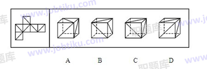 左边给定的是纸盒的外表面,下面哪一项能由它折叠而成?