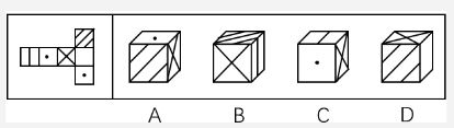 左边给定的是纸盒的外表面,下列哪一项能由它折叠而成?